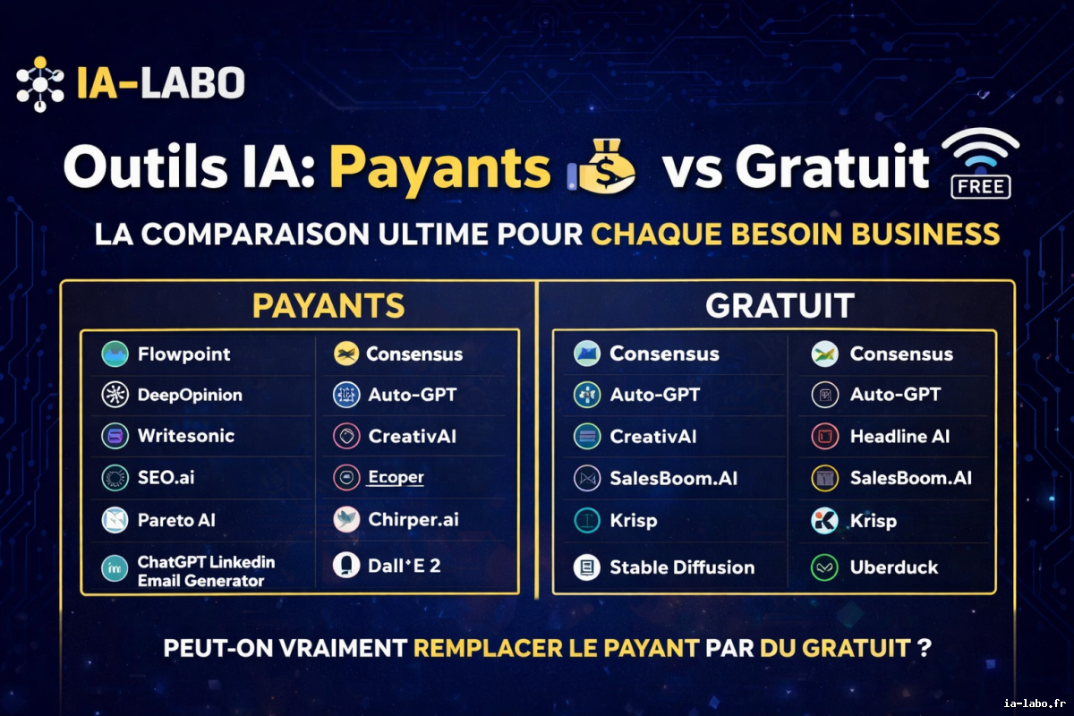 Outils IA gratuits ou payants : que choisir ? Découvrez les meilleures alternatives gratuites aux outils Intelligence Artificielle…